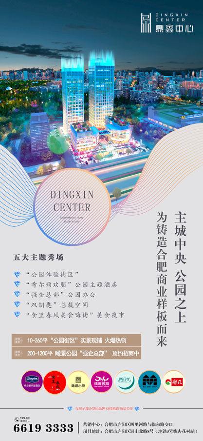 鼎鑫中心(備案名:鼎鑫金融中心),是鼎鑫集團布局合肥,打造的首個公園主題特色商業(yè)項目,集公園主題街區(qū)、總部辦公、星級酒店、特色餐飲、美食夜市、娛樂教育等為一體的都市精品綜合體,也是合肥首個“夜市文化”的樣板示范街區(qū)。
