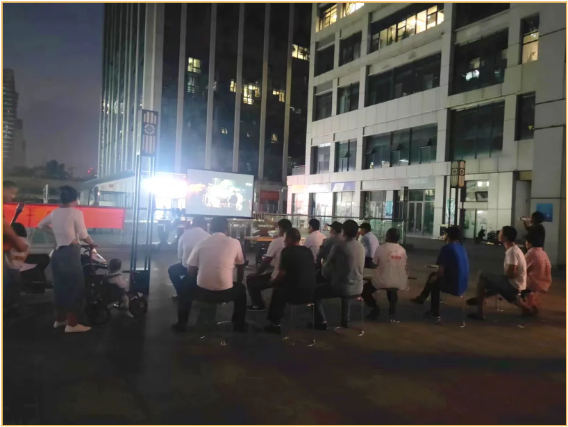 9月1日晚上19:00,觀影活動正式開始,眾多住戶、商戶們攜親友陸續(xù)來到觀影現(xiàn)場有序的排隊等候。燈光漸暗,影片拉開序幕,《八佰》正式開影,隨著故事漸入高潮,每個人的心弦也被緊緊扣住,跟隨片中人物或激動、或緊張、或亢奮、或喜悅, 現(xiàn)場人頭攢動、熱情高漲!