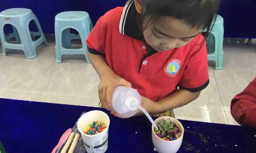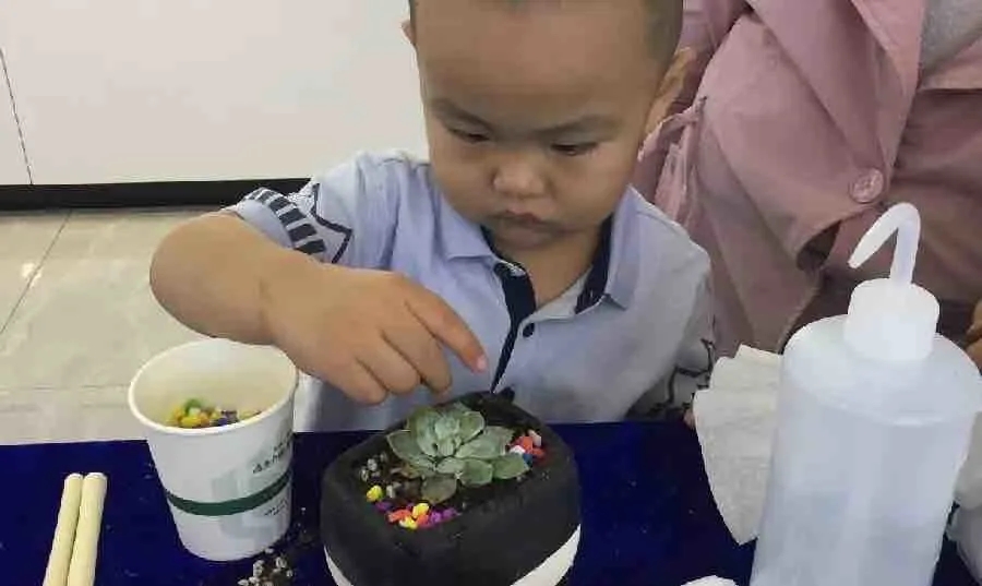 多肉DIY需要巧妙的構(gòu)思,小朋友們紛紛發(fā)揮自己的想象力:有的小朋友獨(dú)自創(chuàng)造自己的彩色世界,認(rèn)真地模樣惹人愛;有的小朋友和爸爸媽媽一起上陣,共同參與其樂融融。一培土一植物,皆能展現(xiàn)其獨(dú)特魅力。
