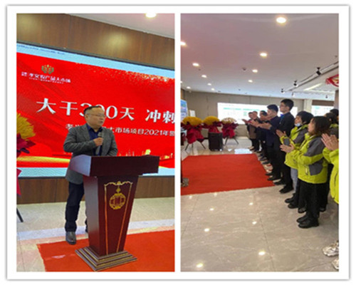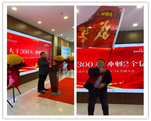 只爭朝夕,不負韶華,新征程,續(xù)輝煌。2021年3月1日,中鼎鑫農·孝義農產品大市場各位領導、員工、銷售精英齊聚展示中心,舉行“2021年開工誓師大會”,此次活動主題為“大干300天 沖刺2個億”!
