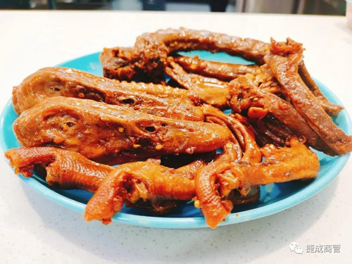 鹵菜怎么能少了鴨鴨呢! 長時(shí)間的鹵煮連里面的骨頭都入味透了更別說外面的肉了,好吃就完事了~