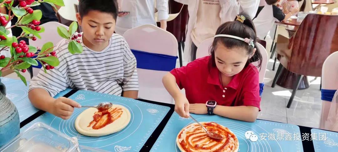 接下來披薩教學(xué)課程正式開始!食材擺上來之后,在場的小朋友興致盎然、躍躍欲試。全程小朋友們獨(dú)立自主完成,廚師指導(dǎo)。場面溫馨有趣,孩子們認(rèn)真仔細(xì),不少小朋友還在互相交流心得。