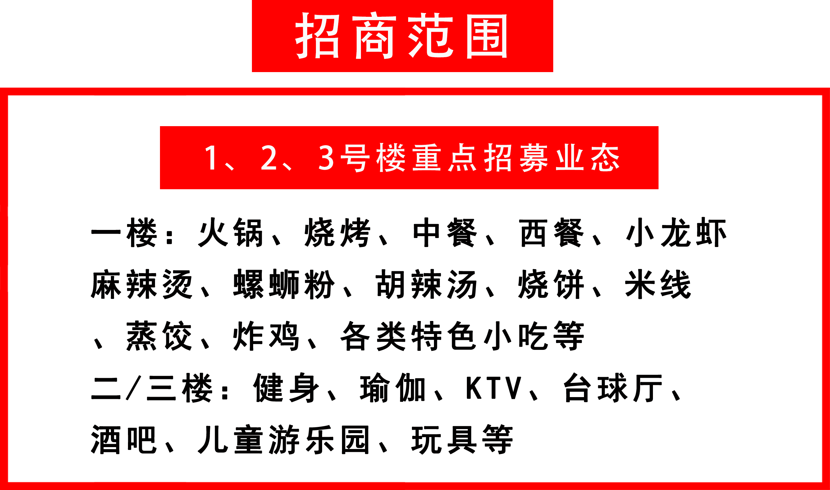 鼎鑫?幸福滙獨有“智慧農(nóng)貿(mào)市場+其他七個業(yè)態(tài)”的組合,巧妙融合形成8大業(yè)態(tài)聯(lián)動,構(gòu)建了一個剛需、高頻、全場景、強粘性的社區(qū)生活服務生態(tài)圈。現(xiàn)在,我們誠邀農(nóng)副生鮮、特色餐飲、娛樂潮玩、教育教培、日用百貨、酒店民宿、家居家電、金融、生活服務類商家攜手入駐,共贏財富局!