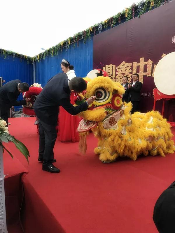 領(lǐng)導(dǎo)致辭結(jié)束,雙獅登上舞臺(tái),精彩的穿、騰、躍、翻、滾、戲、纏,精彩連連,熱鬧喜慶的氛圍,象征吉利瑞祥。安徽鼎鑫集團(tuán)副總裁侯偉先生、易居企業(yè)集團(tuán)安徽區(qū)域總經(jīng)理李長(zhǎng)俊先生,共同執(zhí)筆為舞獅點(diǎn)睛,點(diǎn)睛后的雙獅更顯威猛活潑,彩煙齊放,臺(tái)下掌聲雷動(dòng),隨后,瑞獅移步營(yíng)銷中心門前,登高采青,寓意瑞氣臨門、步步高升,舞獅團(tuán)以其高超技藝和靈敏舞步,把氣氛瞬間推向高潮,侯總接“采”,預(yù)示接財(cái),寓意鼎鑫中心在未來(lái)財(cái)源滾滾來(lái),從頭旺到尾!