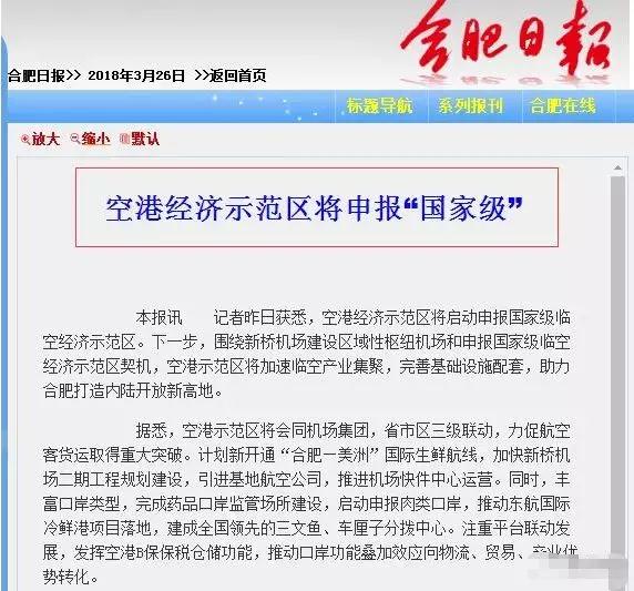 據(jù)合肥日?qǐng)?bào)消息,空港即將啟動(dòng)申報(bào)國(guó)際級(jí)臨空經(jīng)濟(jì)示范區(qū)。